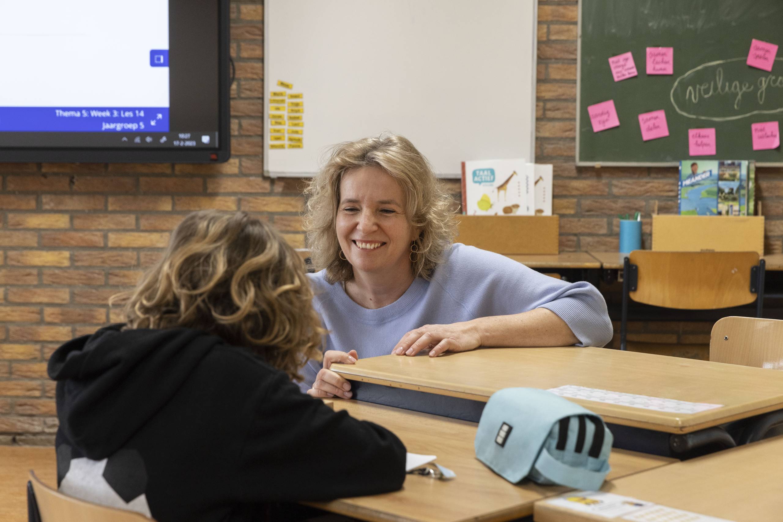 Daarnaast keek de directeur naar welke taken de pabo-student kan uitvoeren én welke ze aan een bevoegd docent moet overlaten. ‘Zij geeft les in bijvoorbeeld taal, rekenen en wereldoriëntatie. Maar niet in begrijpend lezen, omdat een leerkracht daarvoor andere vaardigheden moet aanleren.’ Groenendaal paste ook het lesrooster aan, zodat de pabo-student de groep niet de hele dag heeft. Op haar twee dagen krijgt de klas gym en muziek van vakdocenten.